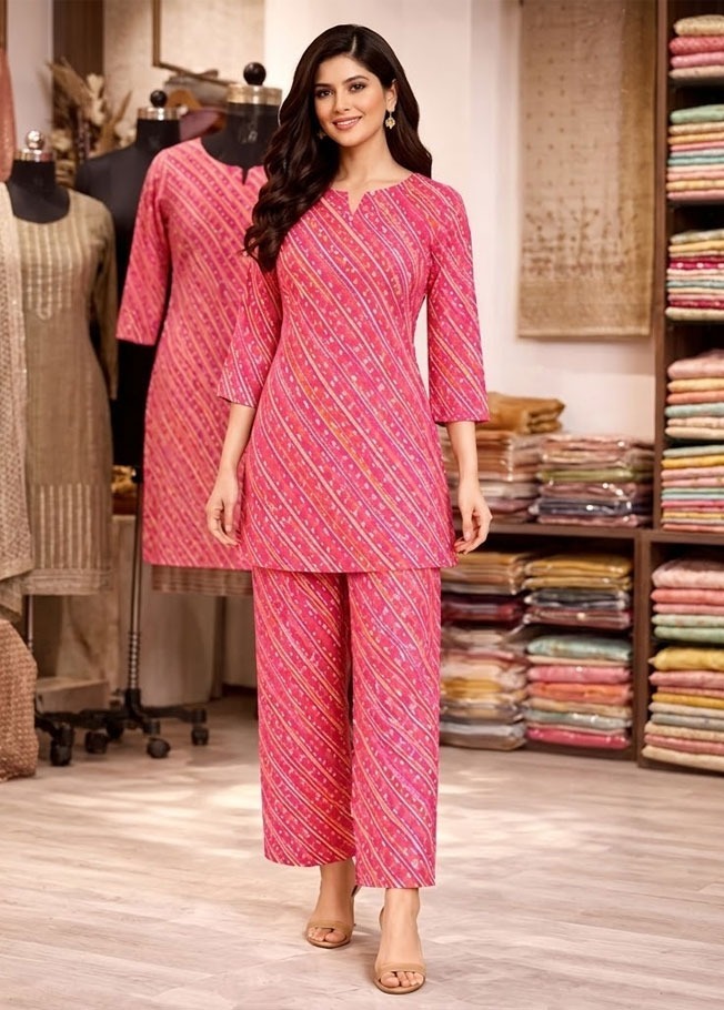 Step into effortless style with this beautiful pink printed co-ord set, designed to offer both comfort and elegance. Crafted from premium quality cotton fabric, this outfit is lightweight, breathable, and perfect for all-day wear.